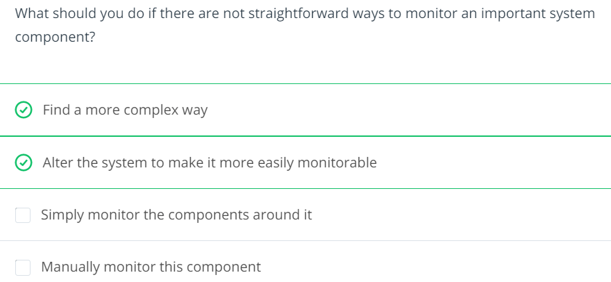 Monitoring and responding are core to every vital system. When you architect a platform, you should always think about how you will know if something is wrong with that platform early on in the design process. There are many different kinds of monitoring that can be applied to many different facets of the system, and knowing which types to apply where it can be the difference between success and failure.