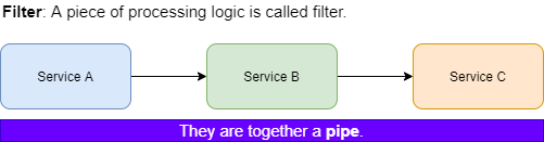 - Data is passed from one filter to another filter.