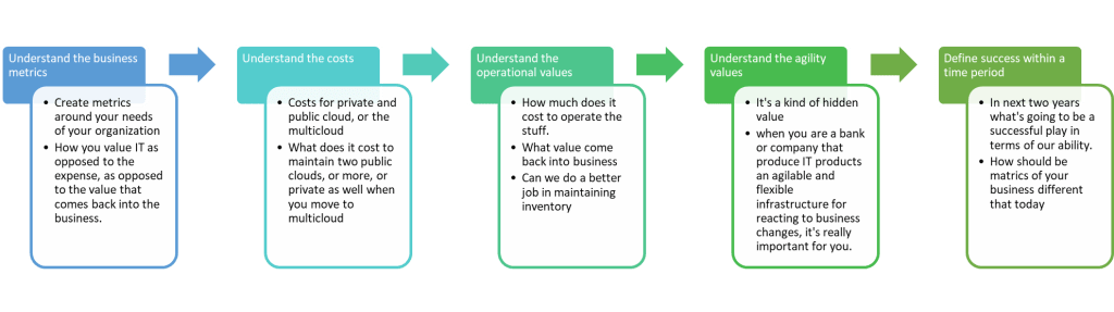 Another mandatory point is, to figure out the business case to understand costs vs. values, the organizations need some sort of value advantages of doing so, how can this value come back into the organization.