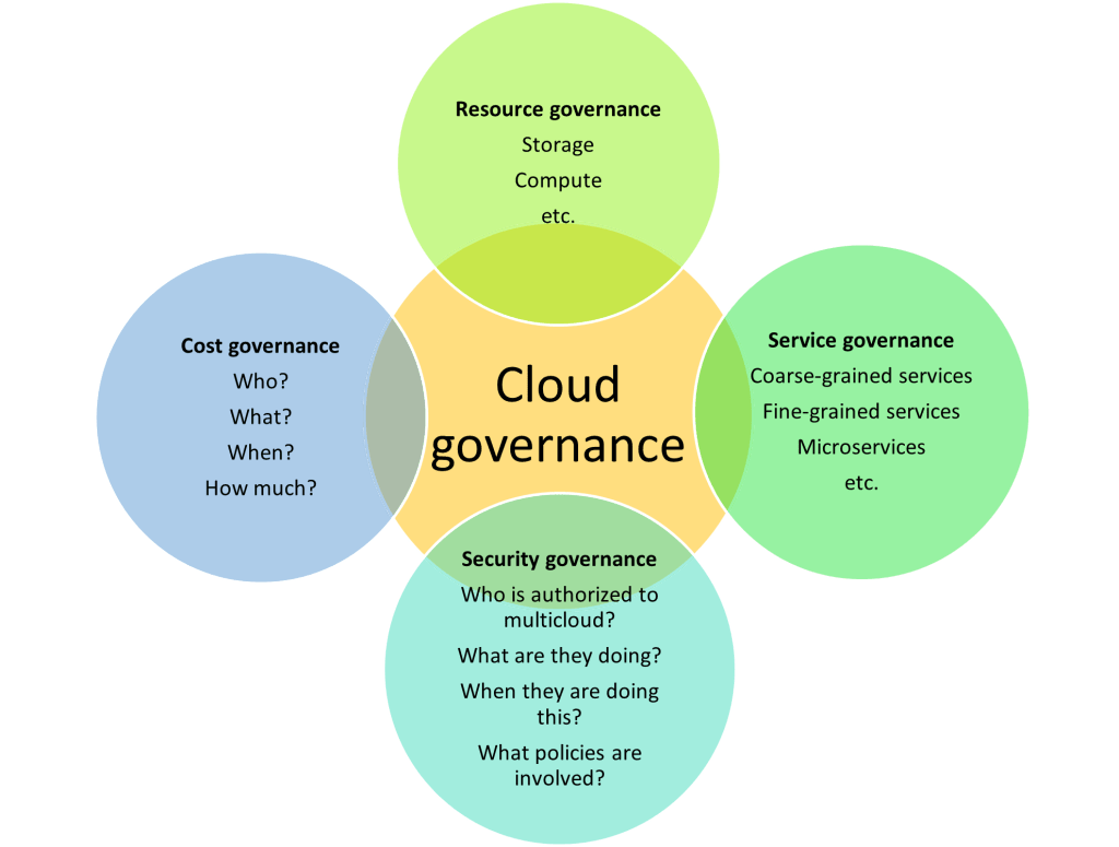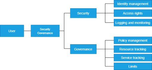 Security is not governance but has to be linked for multi-cloud. Governance is about putting limitations on the utilization of resources and services, in other words, governance is restrictions based on identity and policy. Security is about authenticating and authorizing the person and machine that use this resource, in other words, security is restrictions based on identity and access rights (Identity Access Management is an important requirement for multi-cloud). [4]