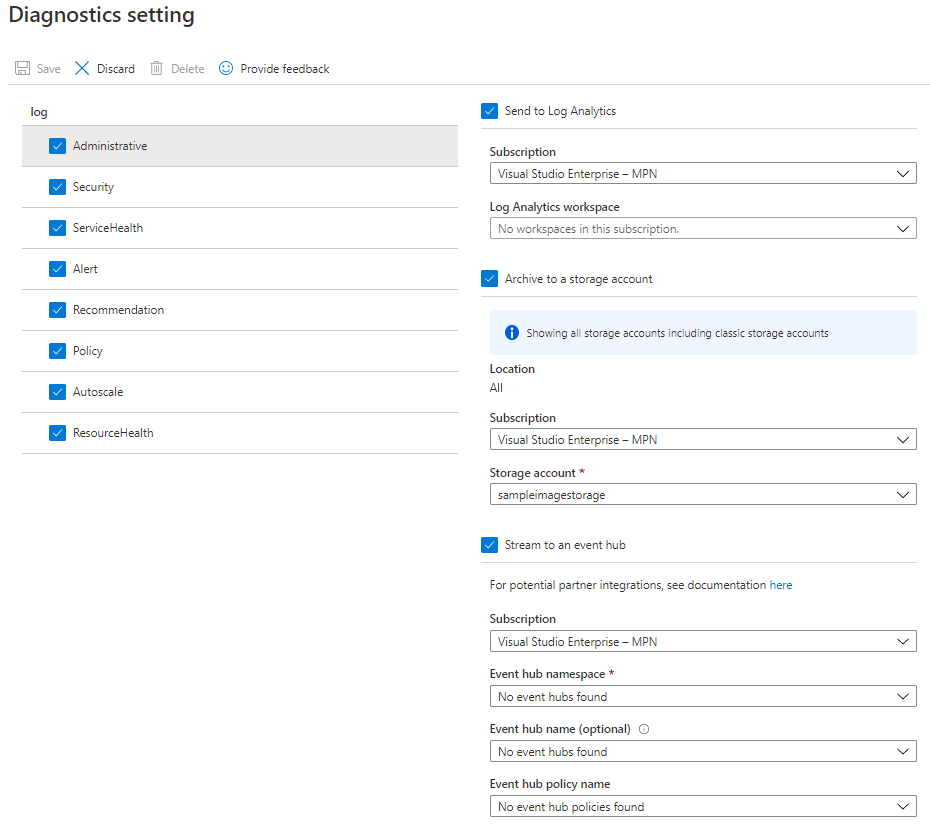 Diagnostic settings